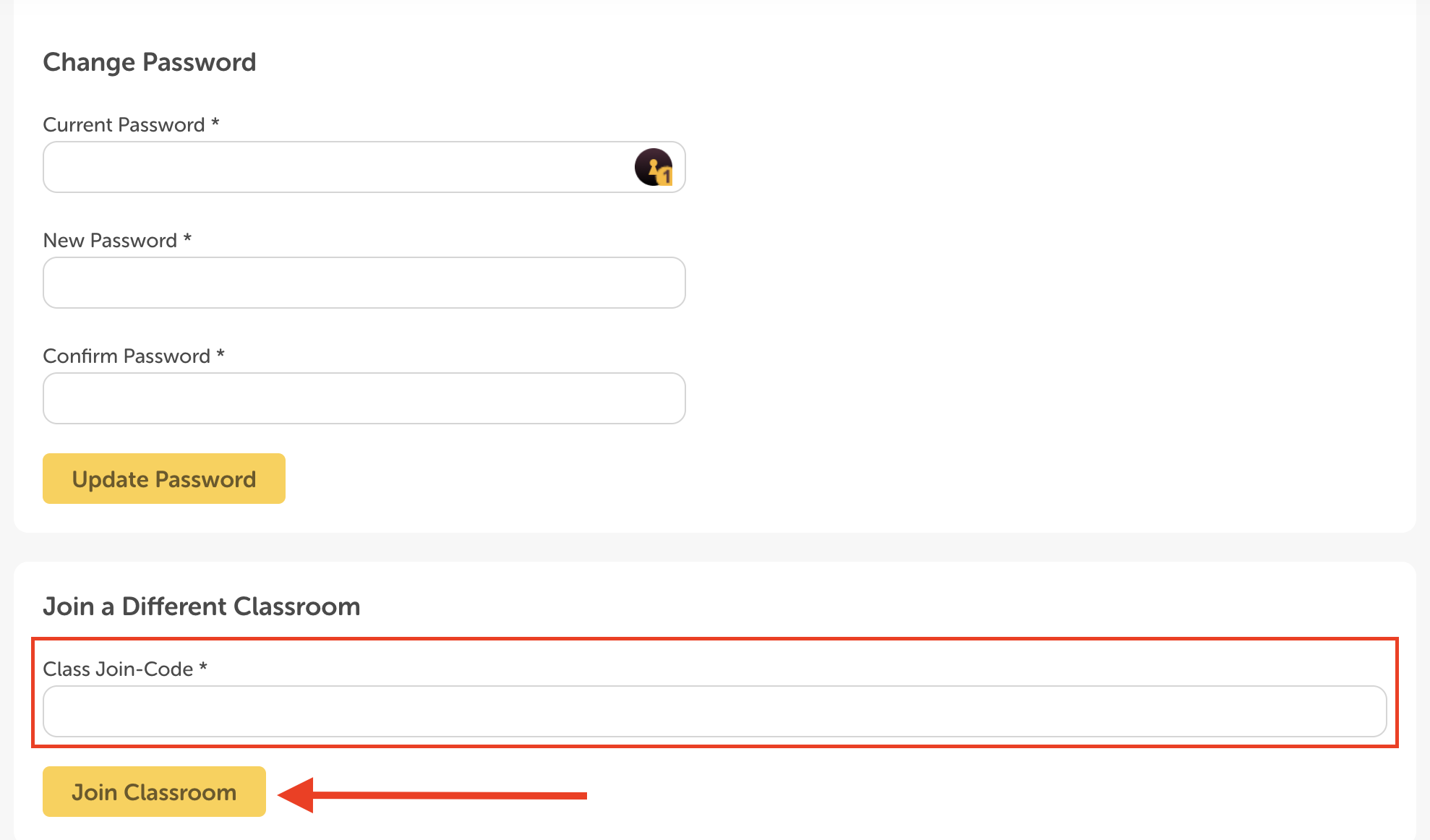 Use the Join-Code when students need to join a new class. They will be able to move their existing student accounts from one class to another using this code. As a teacher, you are responsible for sharing the Join-Code with your students.