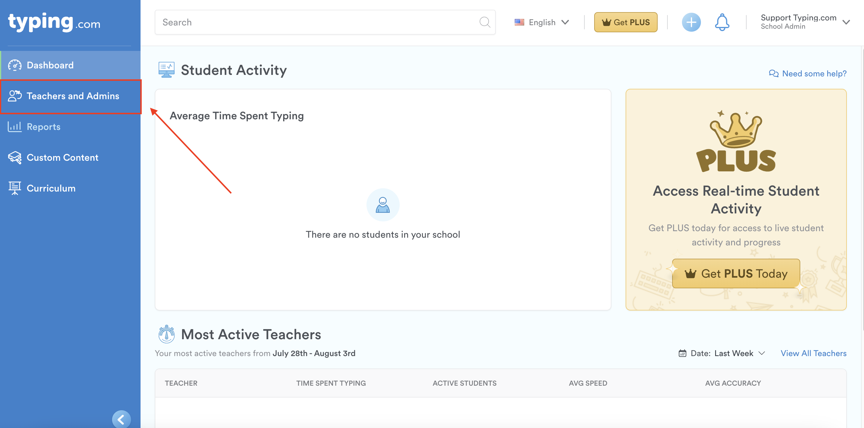 Step 2: Go to 'Teachers and Admins' on the left-hand side.