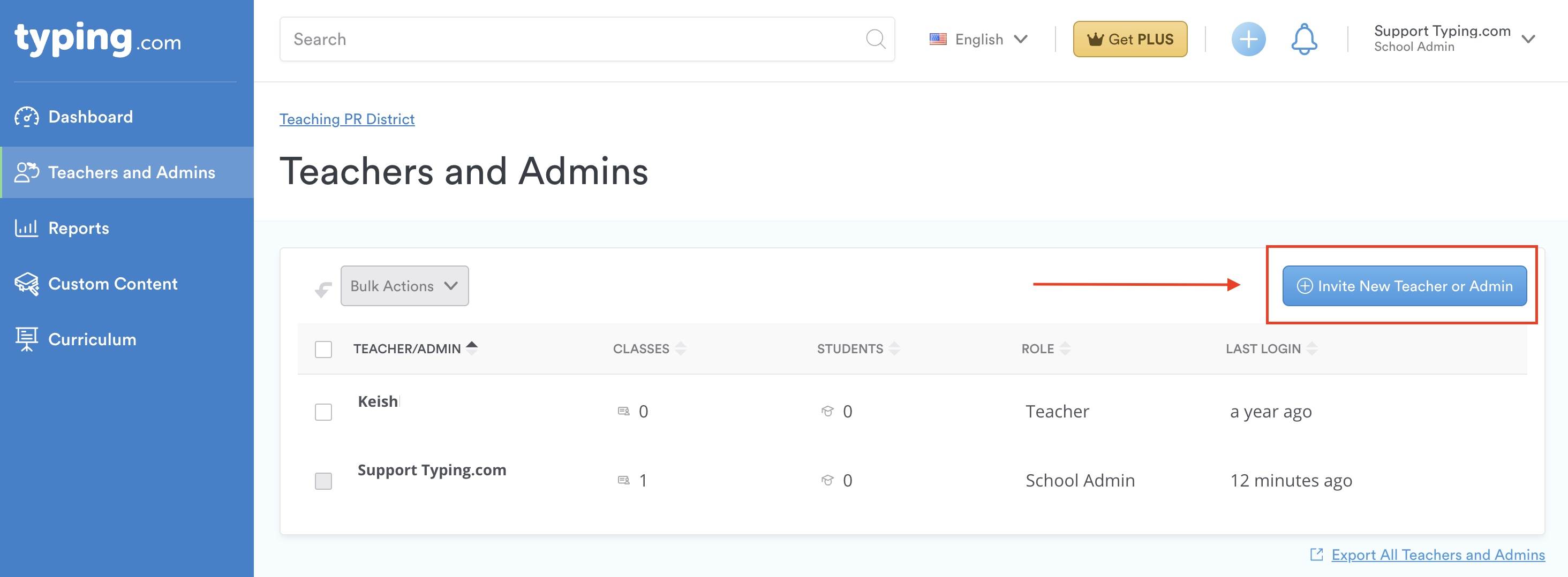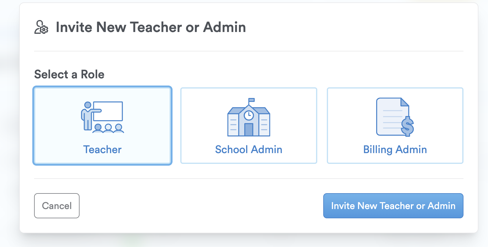 Step 3: Click 'Invite New Teacher or Admin.'