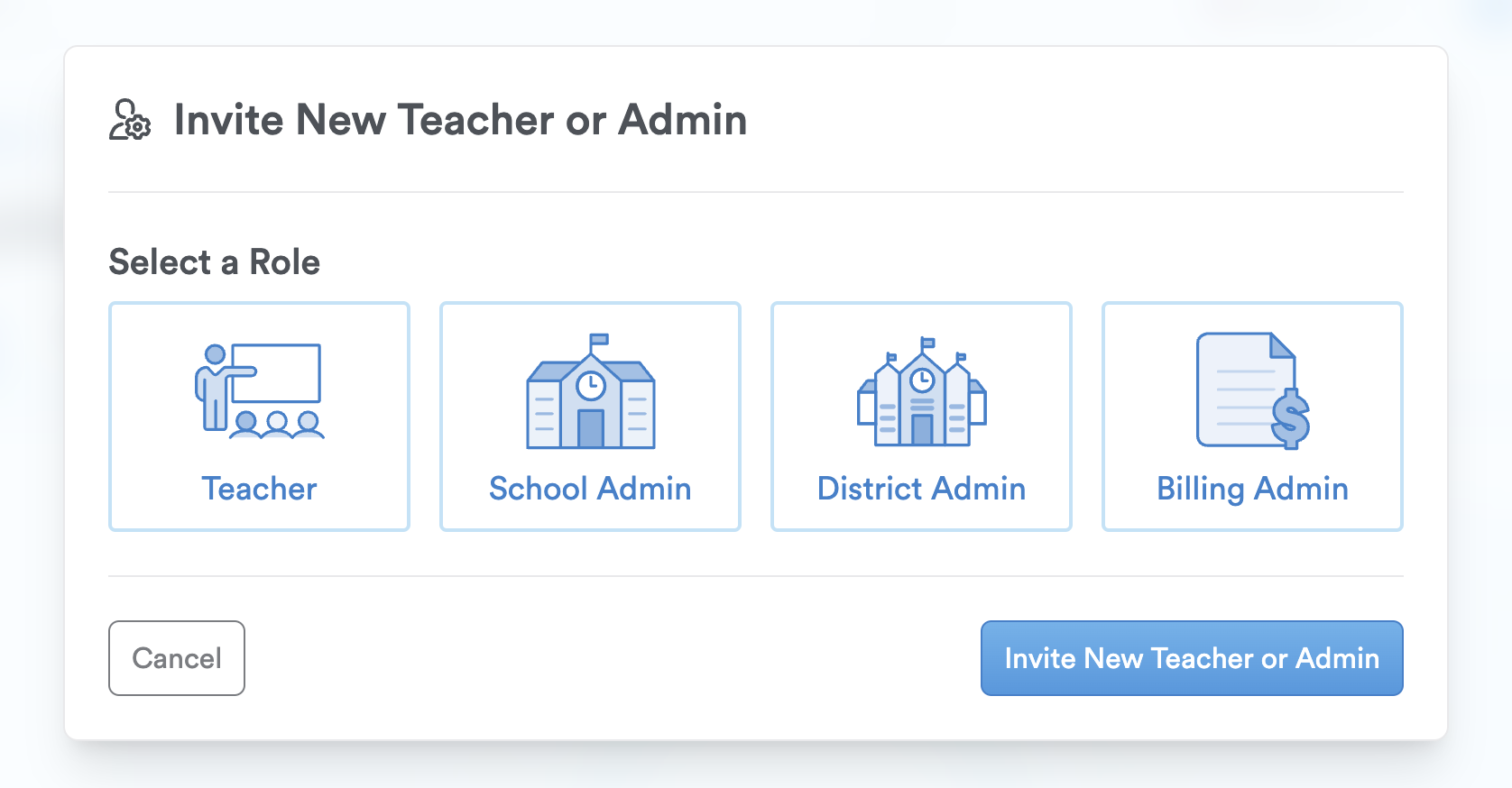 Step 4: Click 'Invite New Teacher or Admin.'