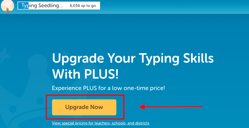 Step 3: Click on "Upgrade Now" to proceed with upgrading your account for a one-time price for a year of Typing.com PLUS benefits.