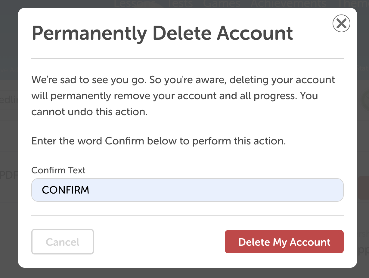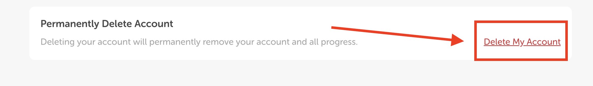 Pro-Tip 1: Deleting your account will permanently remove your account and all progress associated with it. You cannot undo this action, so please make sure you truly won't be needing it anymore!