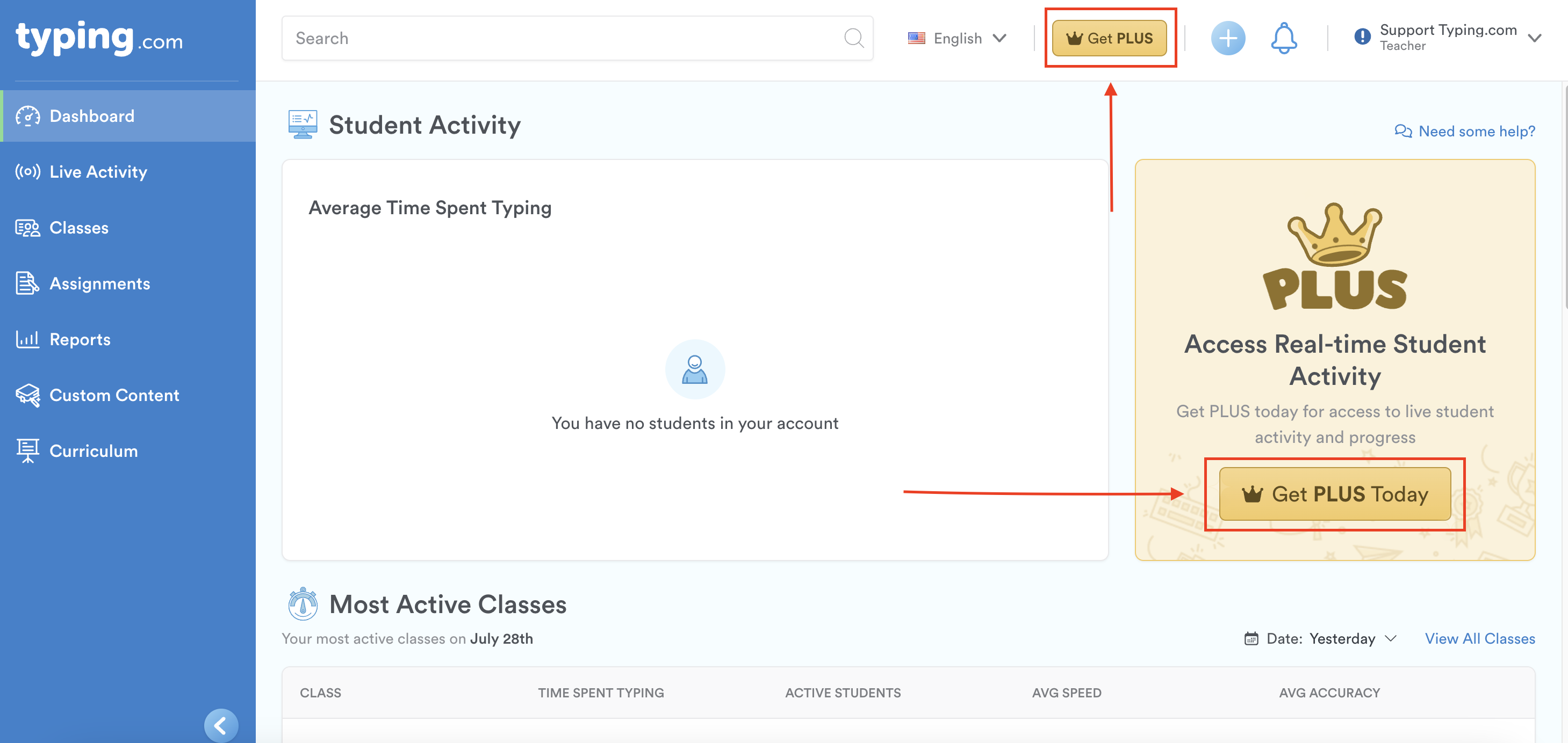 Option 1: Click “Get PLUS Today” on the right side of the dashboard.