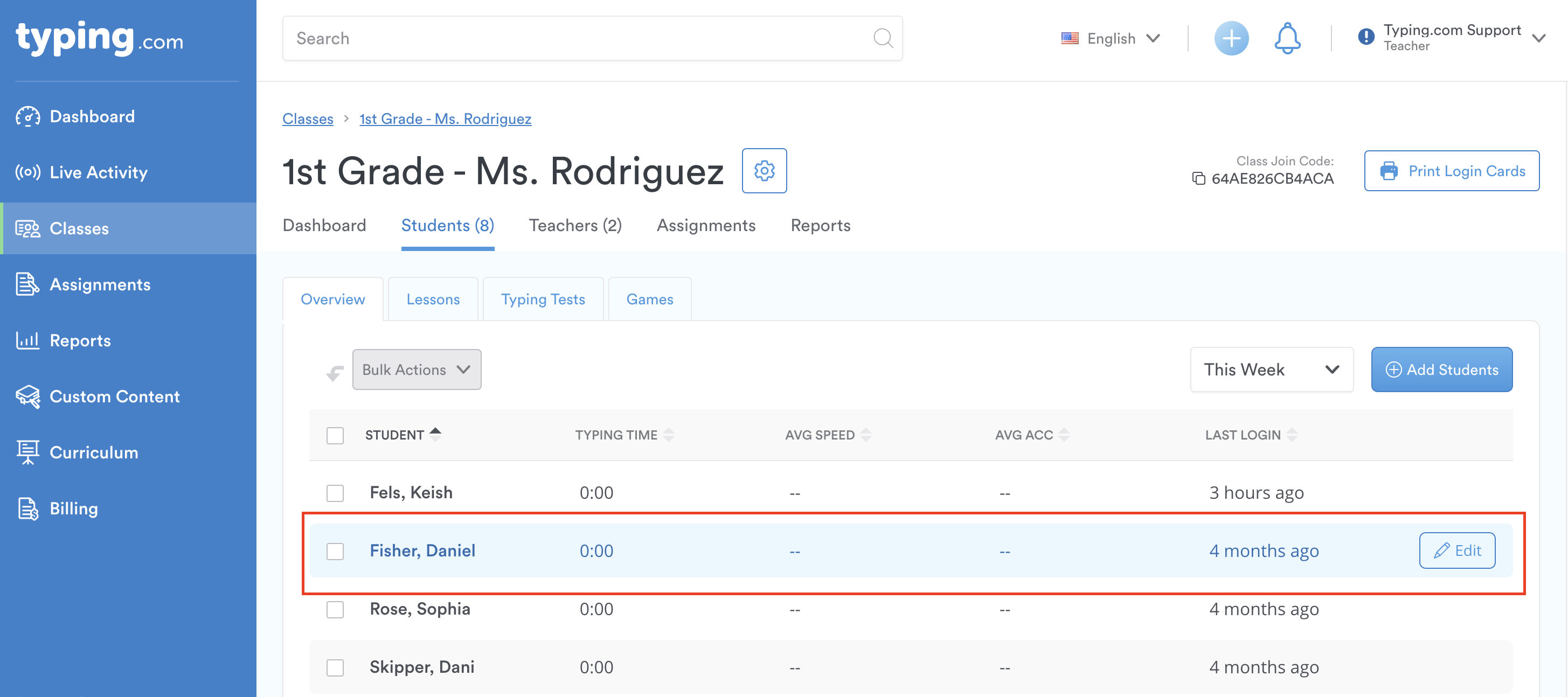 Forgotten passwords? Typo in a student's name? Wrong email address? No problem! Teachers can help students reset their information directly from the Teacher Portal. Here’s how you can keep things running smoothly: