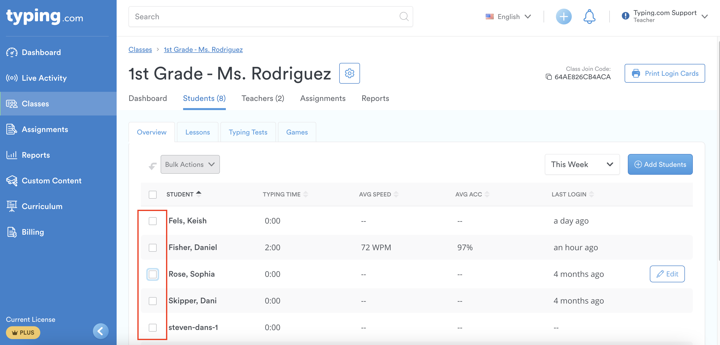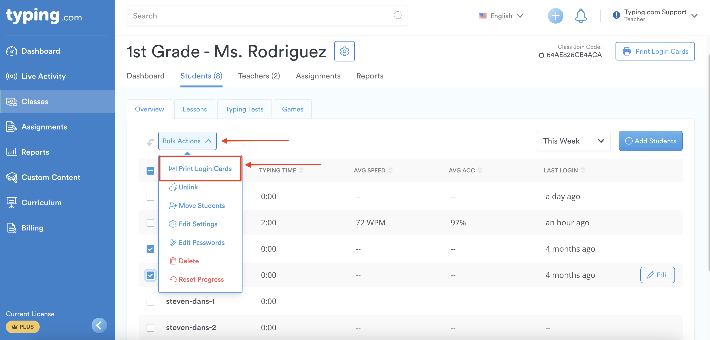 Pro-Tip 1: If you're syncing your classes via Google Classroom, Microsoft Teams, Clever, or ClassLink, you won't be able to print login cards. Typing.com doesn't store this information (passwords) if the accounts are syncing through any of those platforms.
