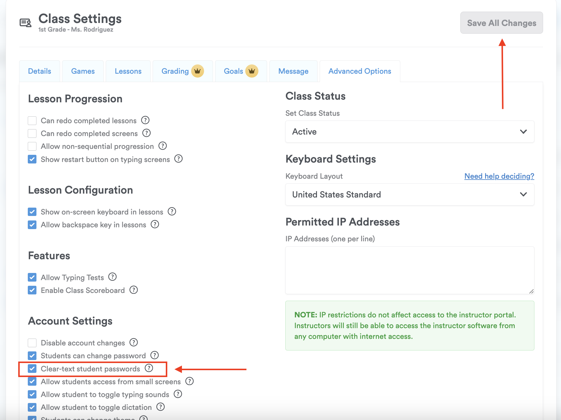 Pro-Tip: If the password is encrypted, go to the class's settings and click on the "Advanced Options" tab. Check the box that reads "Clear-text student passwords," then click "Save All Changes."