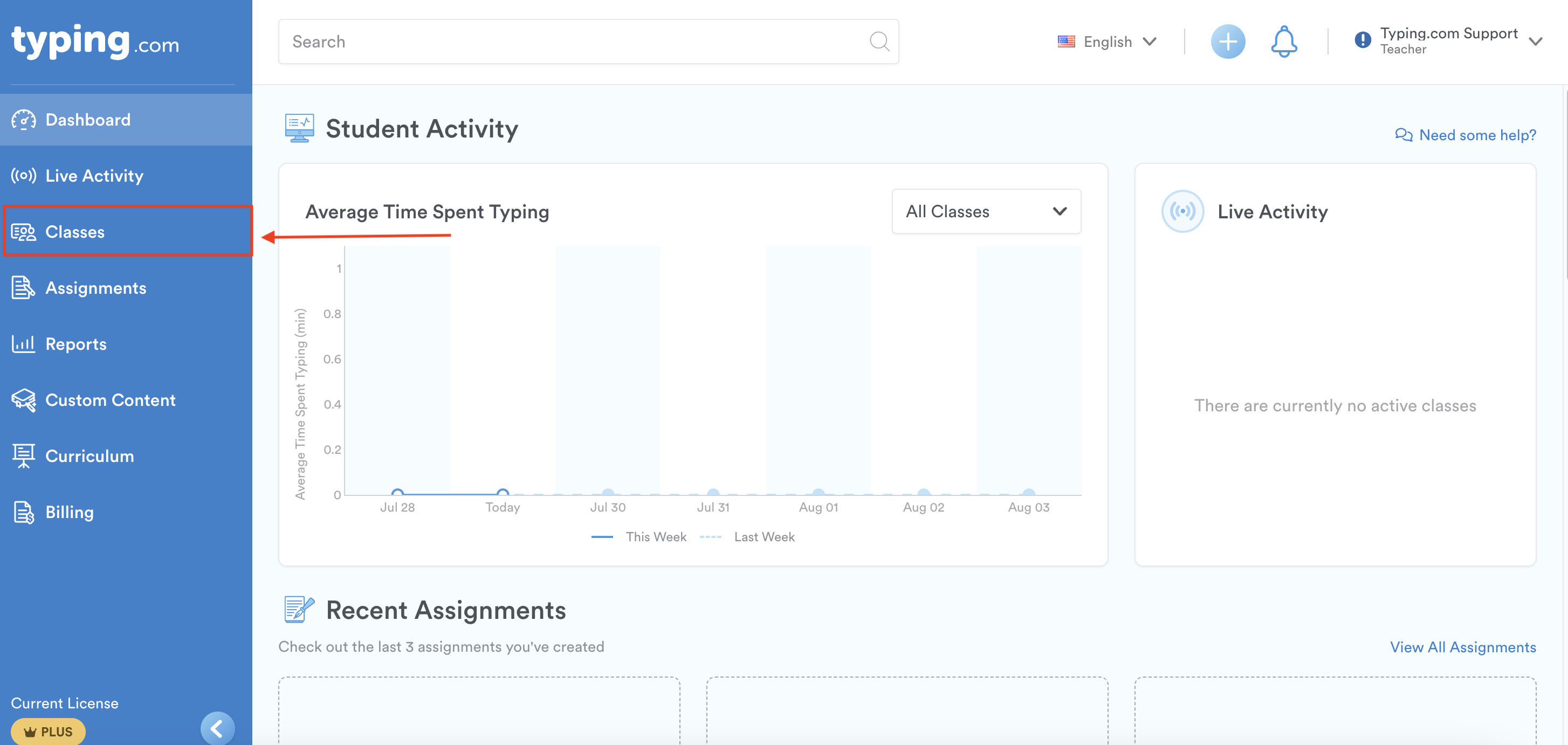 Step 2: Click on “Classes”