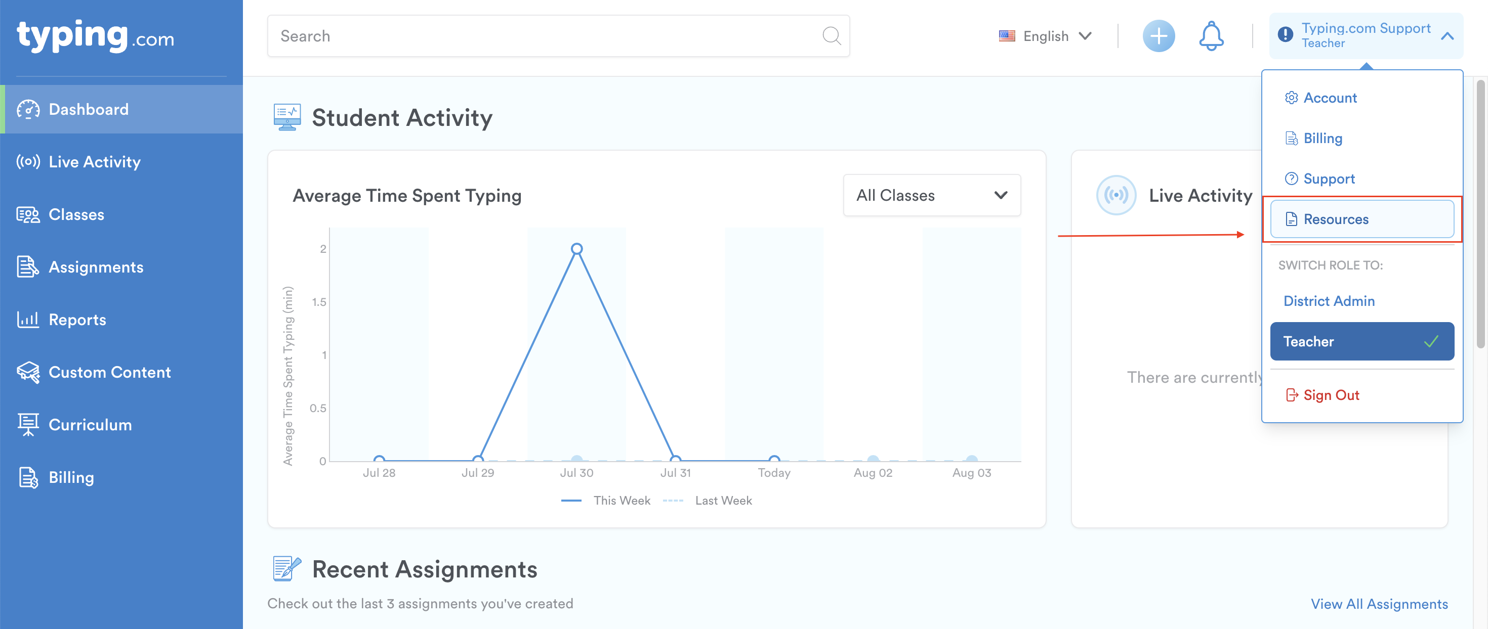Step 2: Hover over your name on the top right corner and click on “Resources” from the dropdown menu.