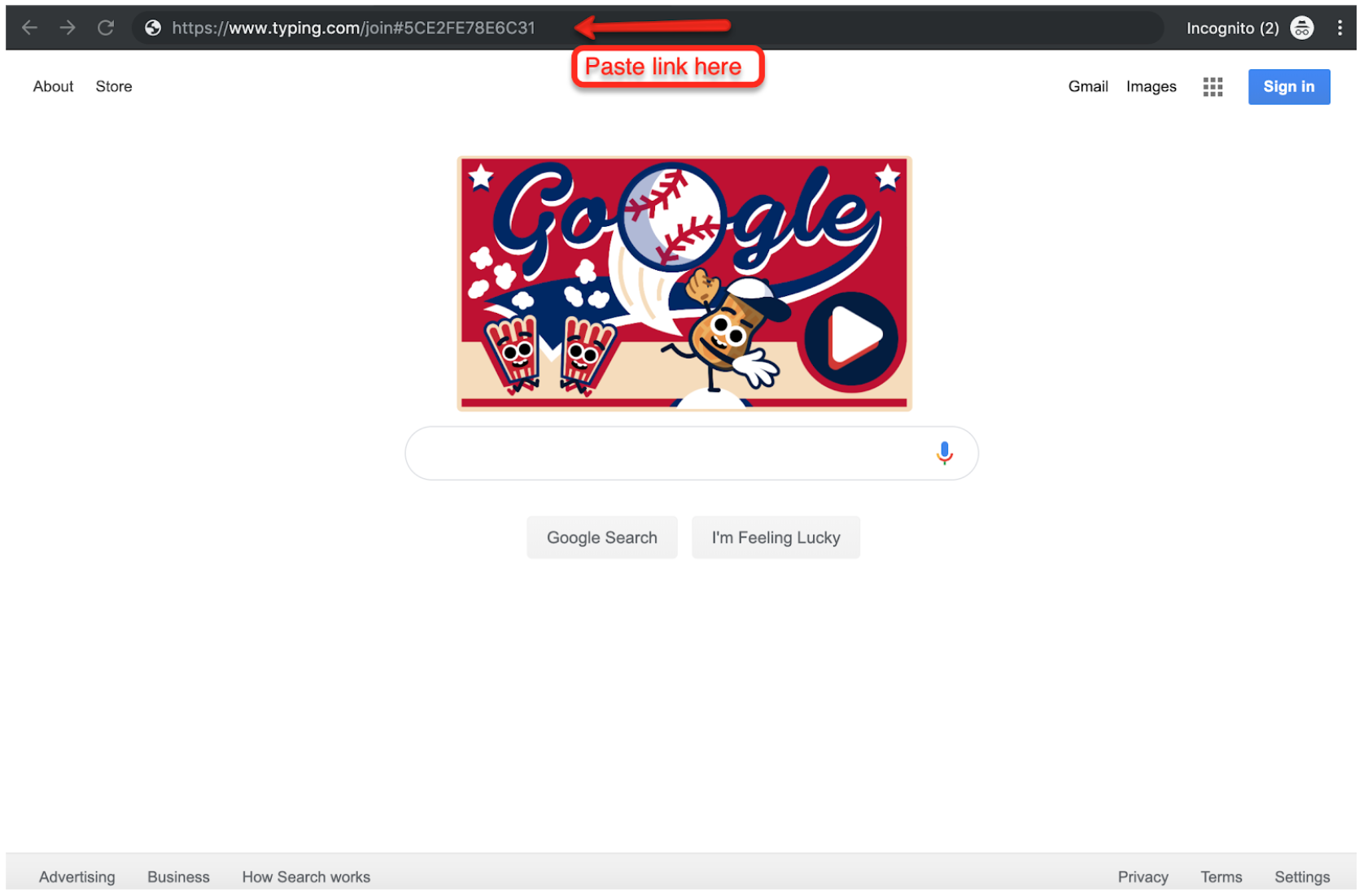 Step 5: Have your students open a new browser window, paste the provided link into the URL bar, and press “Enter.”