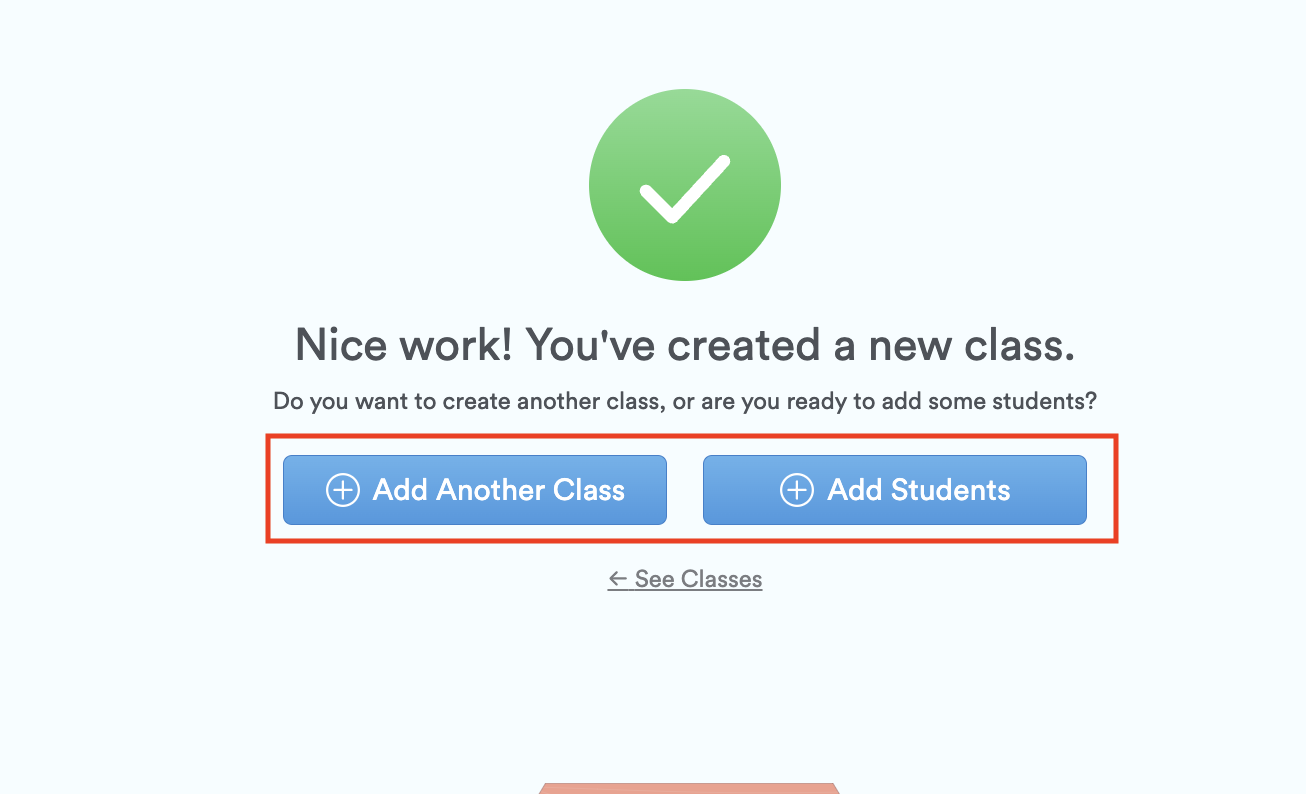 Step 6: After creating the class, you have the either create another class by clicking 'Add Another Class' or add students by clicking 'Add Students.'