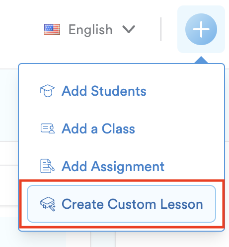 Want to access creating a custom lesson quickly? Click on the blue plus button next to the notifications bell icon at the top of the page, then select 'Create Custom Lesson' from the dropdown menu. This allows you to create a custom lesson from any page at any moment.