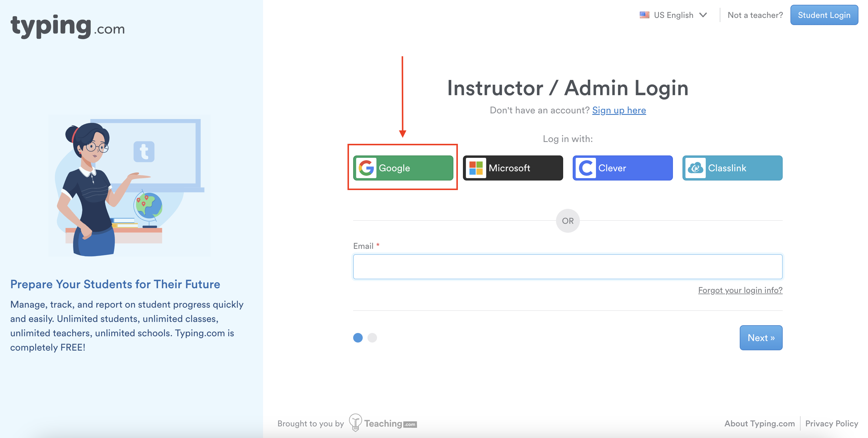 Ensure you log in to your Typing.com account using your Google credentials.