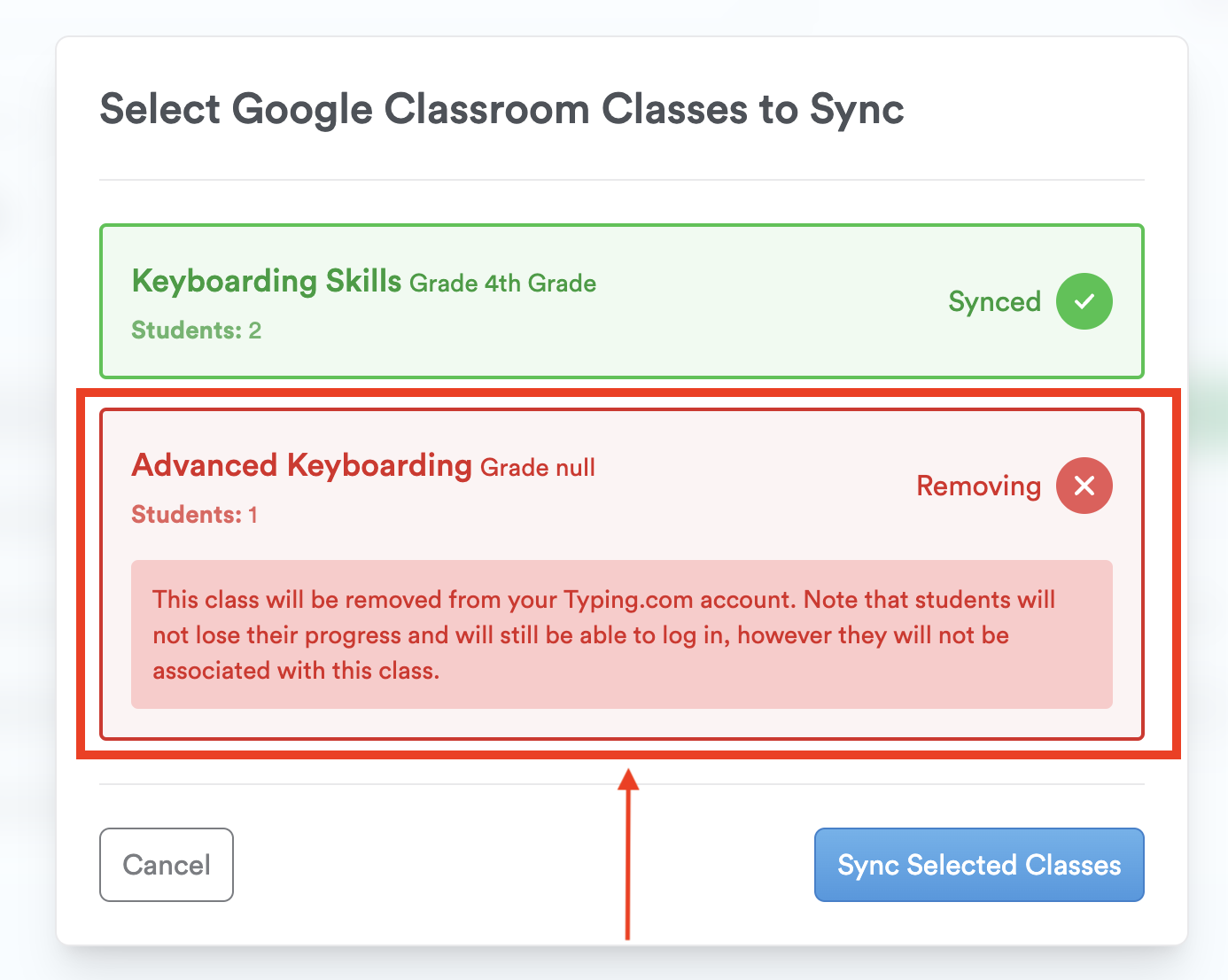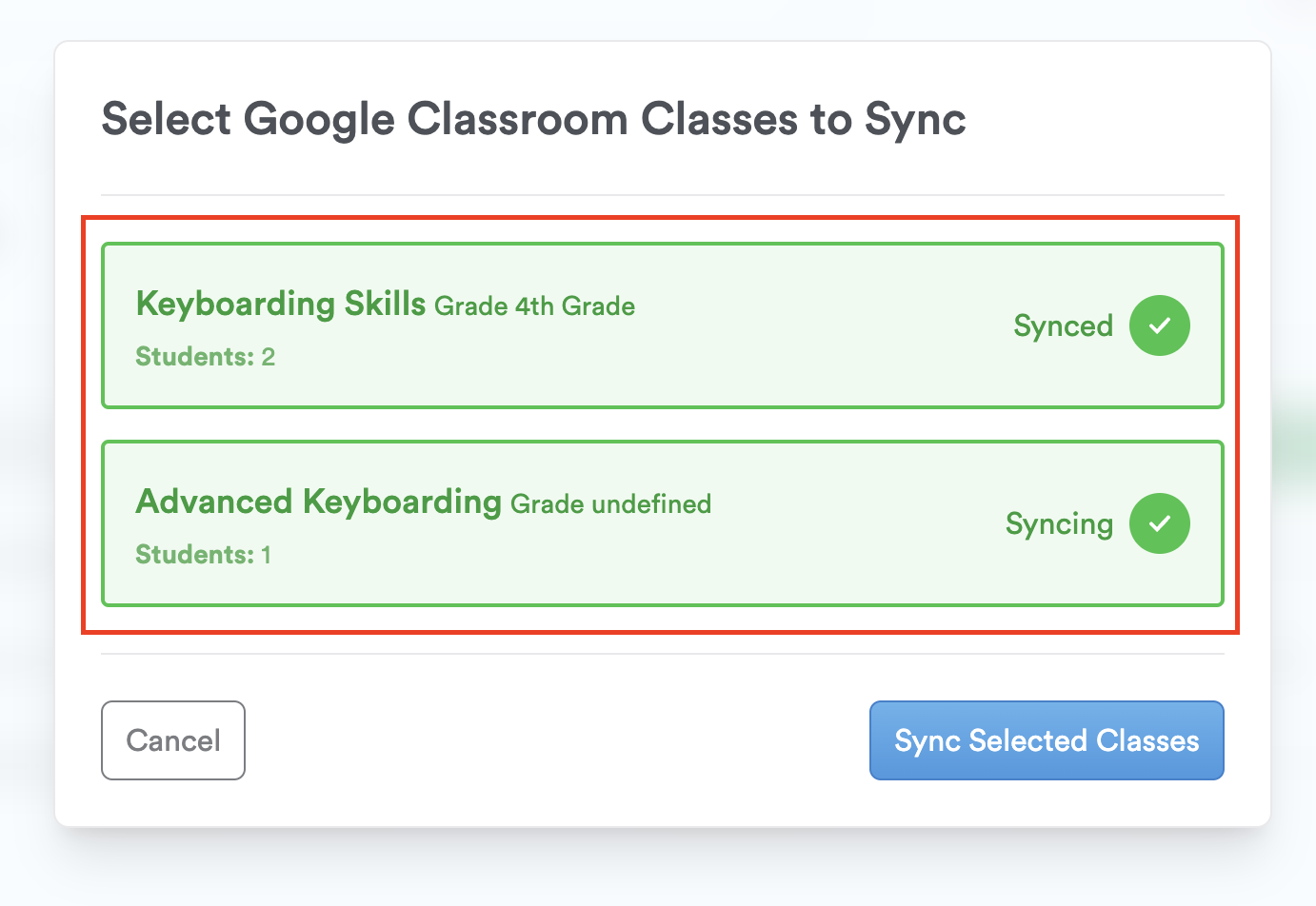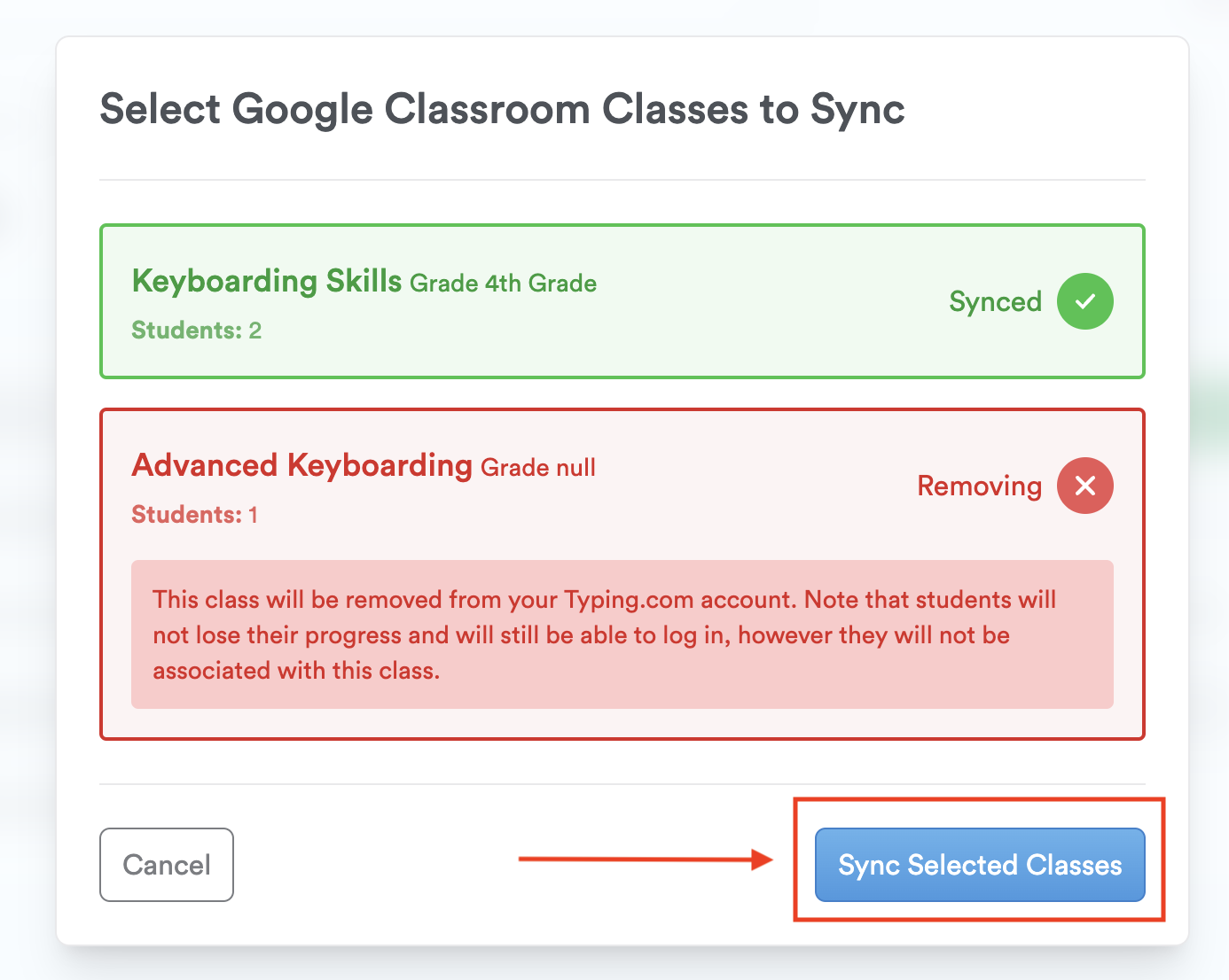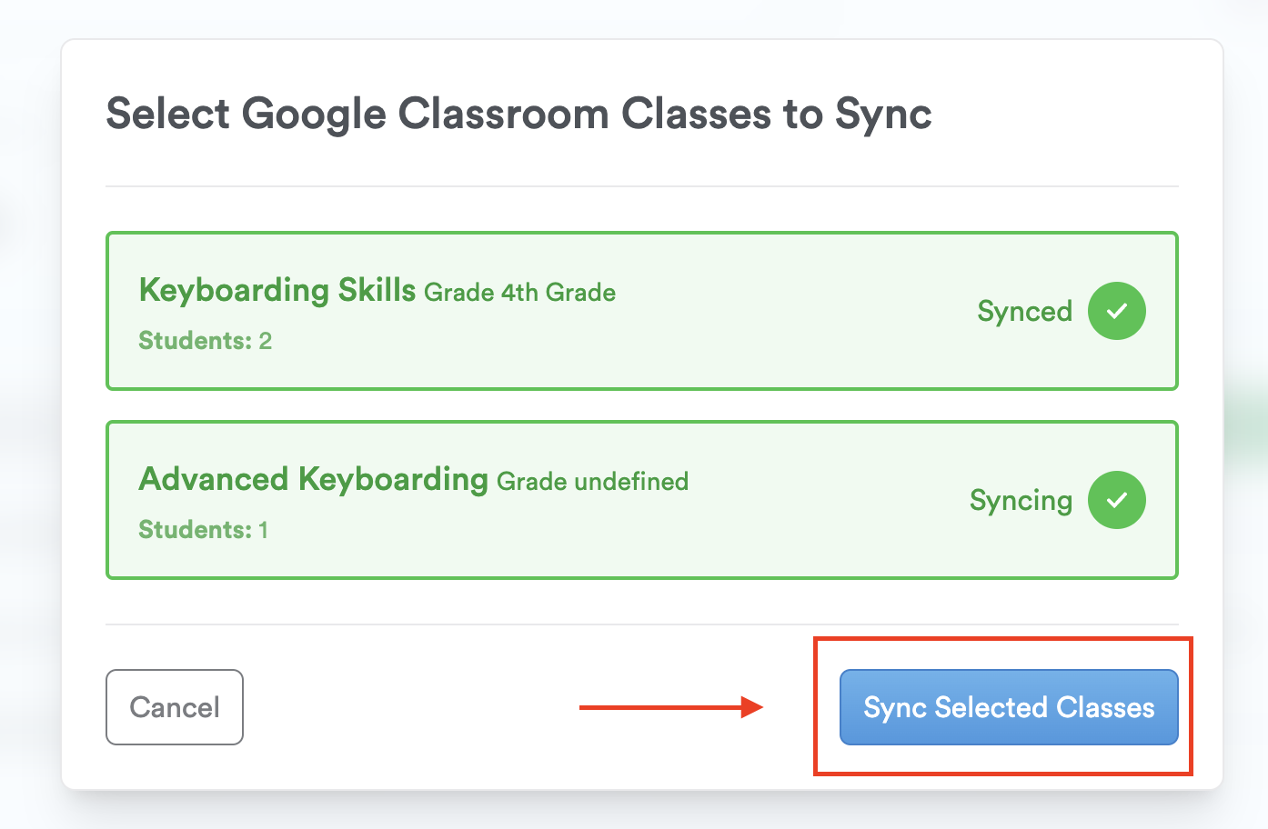 Step 5: Click "Sync Selected Classes."