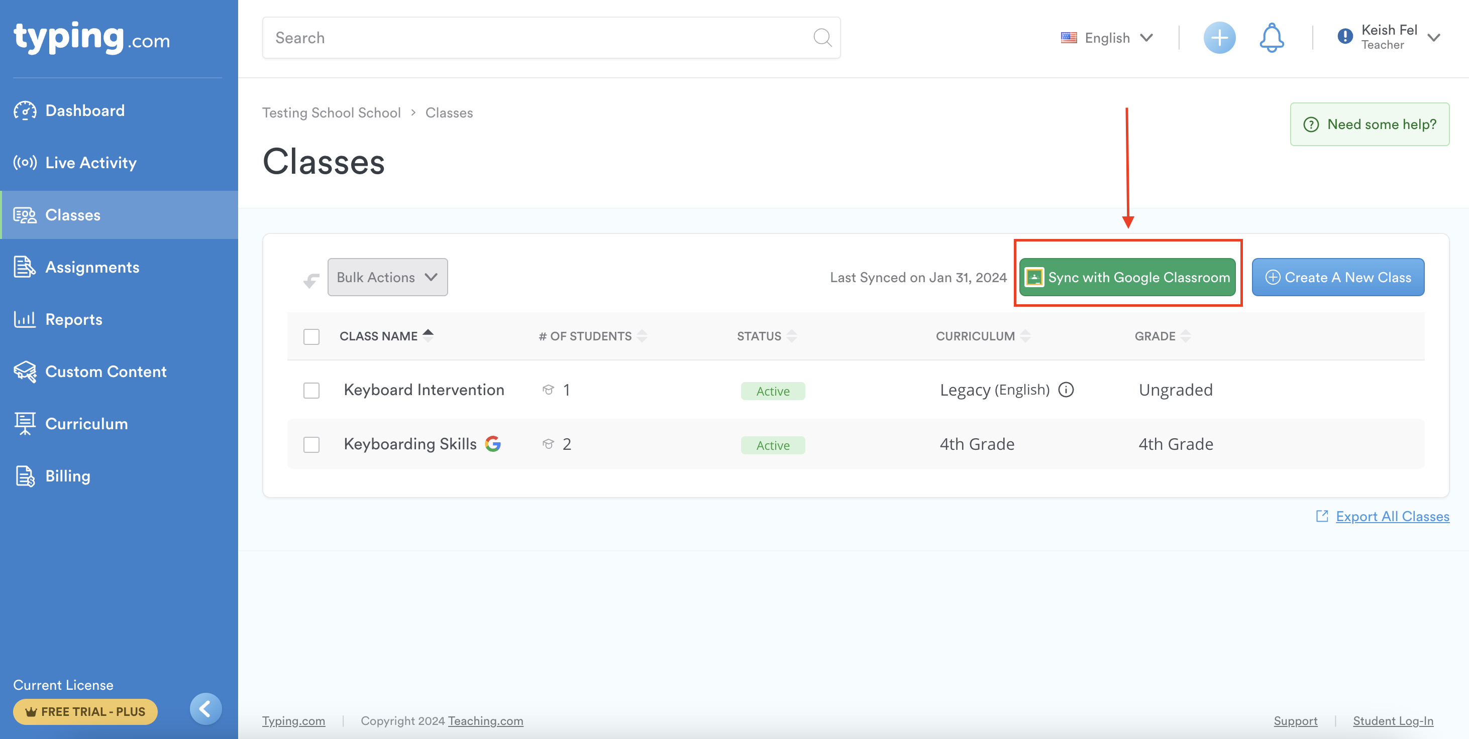 Sync With Google Classroom (Teacher)