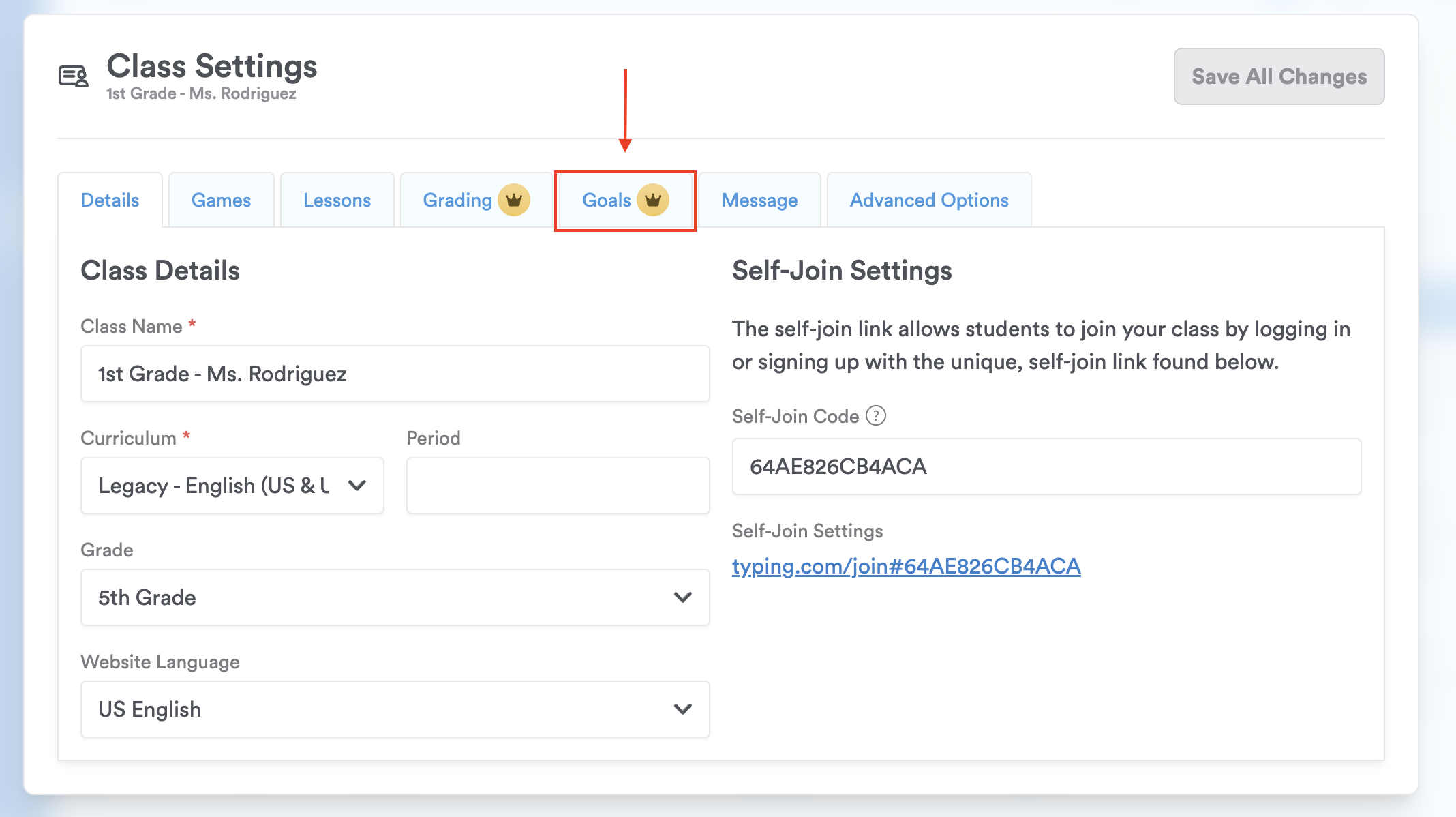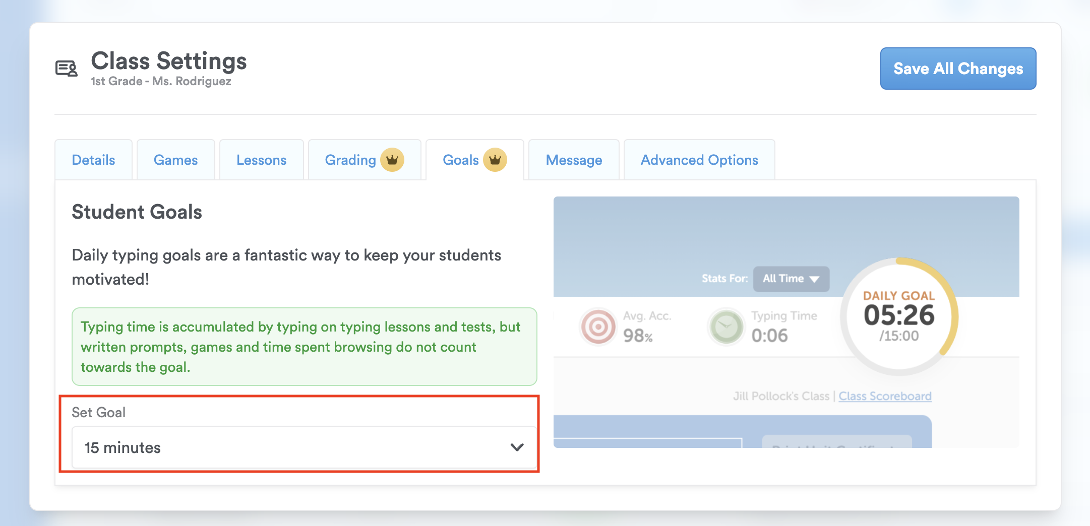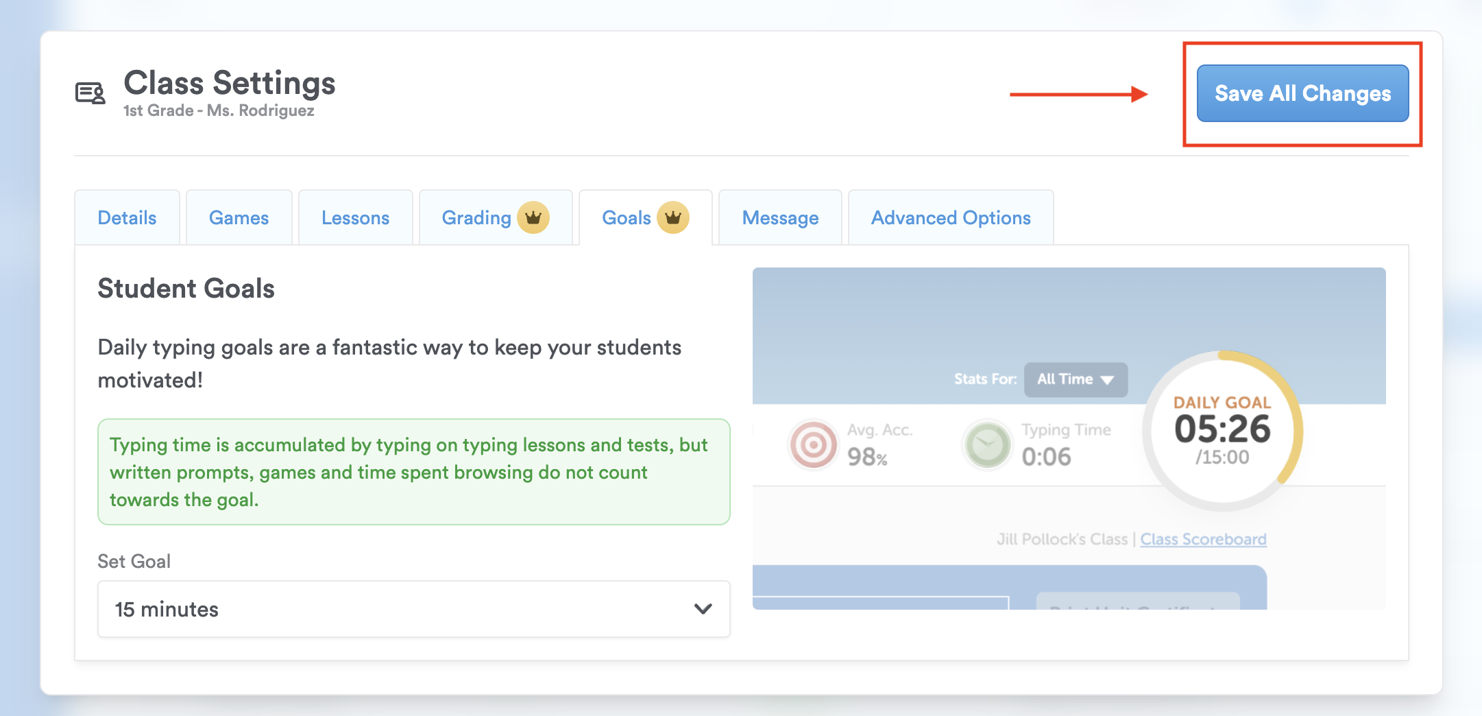 Step 5: Set a daily typing goal for your class from the 'Set Goal' field.
