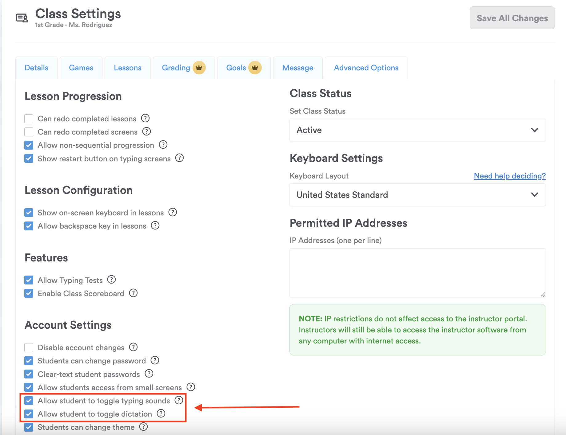That's it! Now you know how to enable or disable typing sounds and dictation for your students. Enjoy creating the perfect learning atmosphere in your classroom! 😊