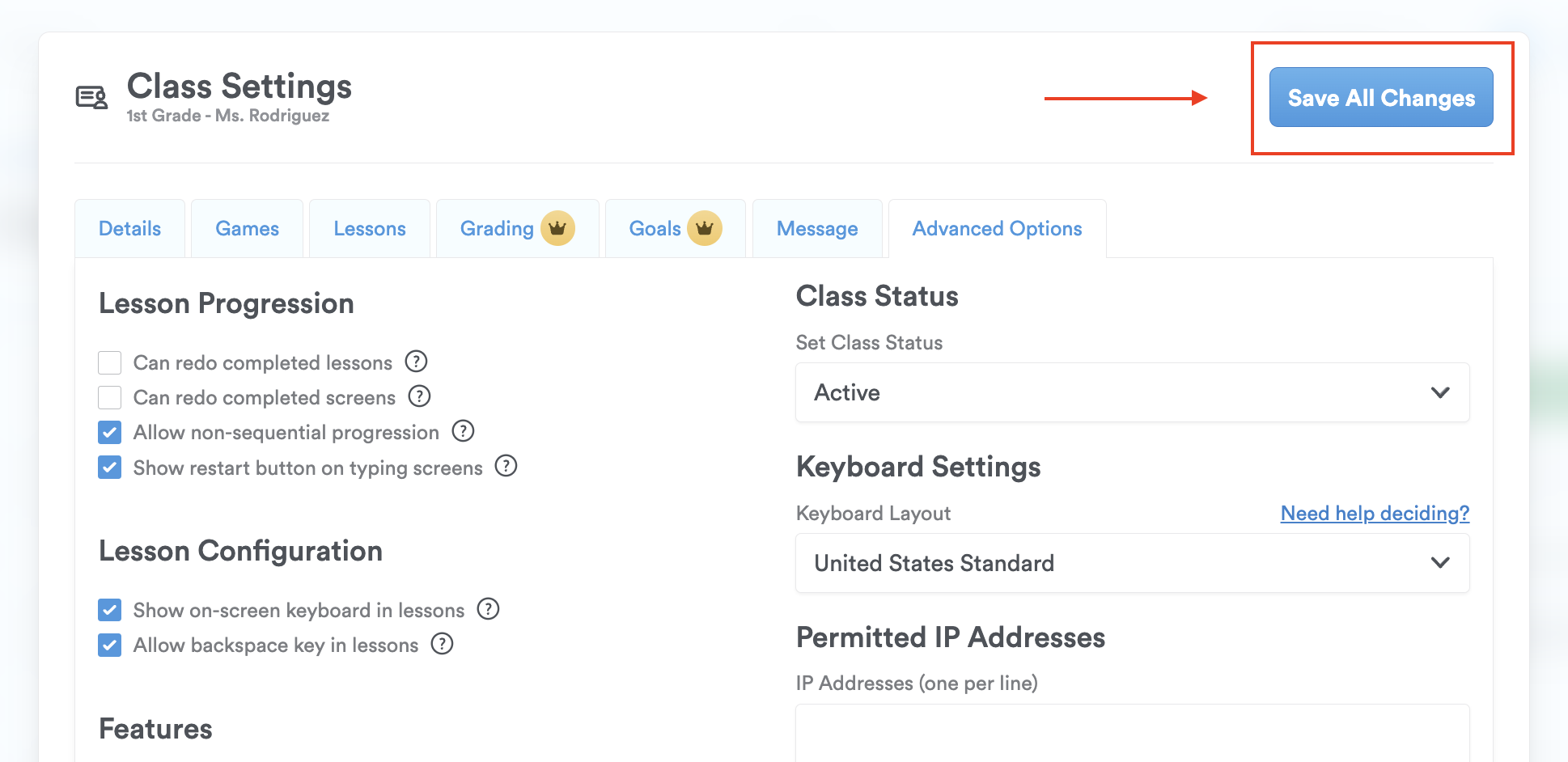Step 4: In the class settings, click on the “Advanced Options” tab.